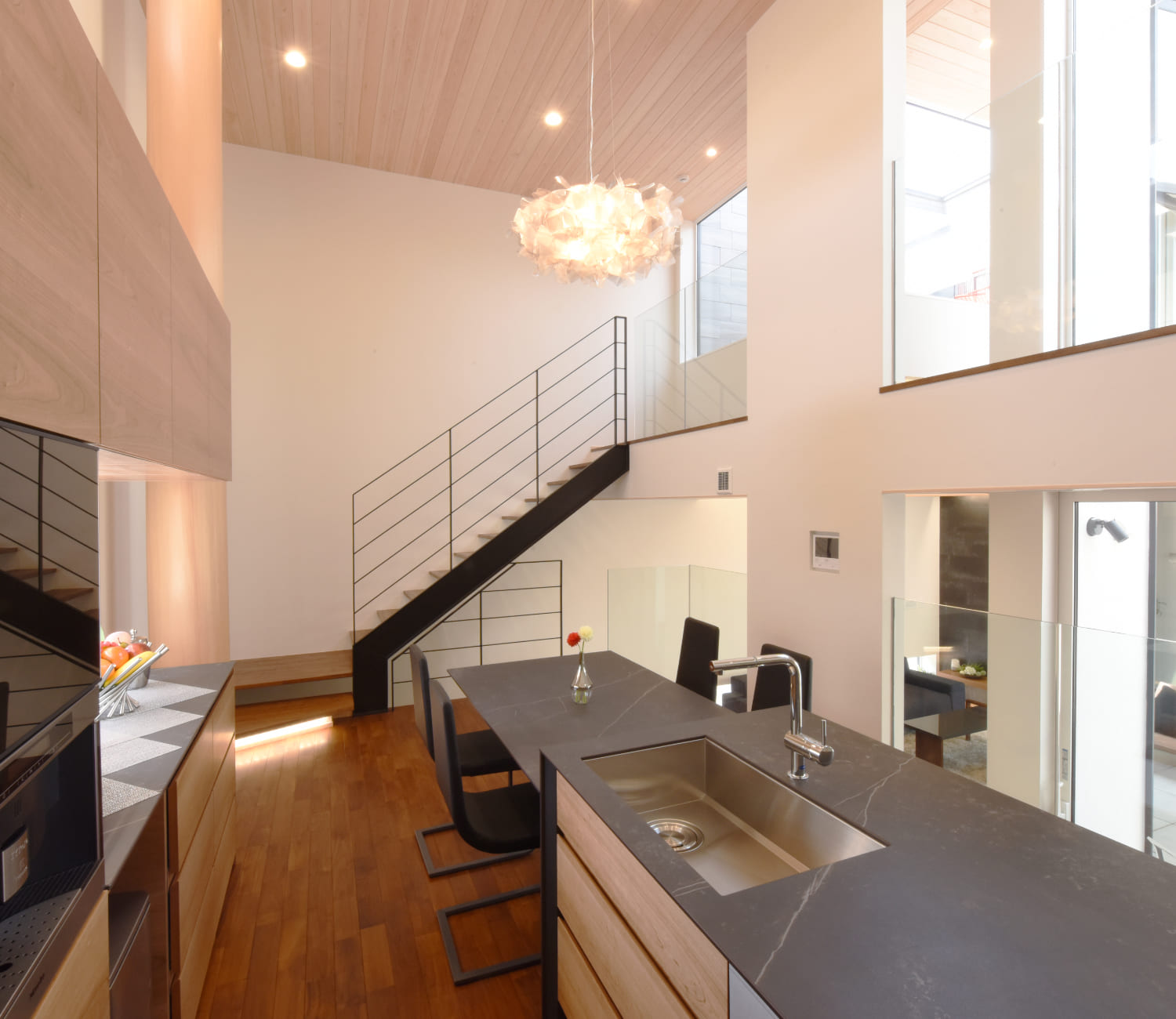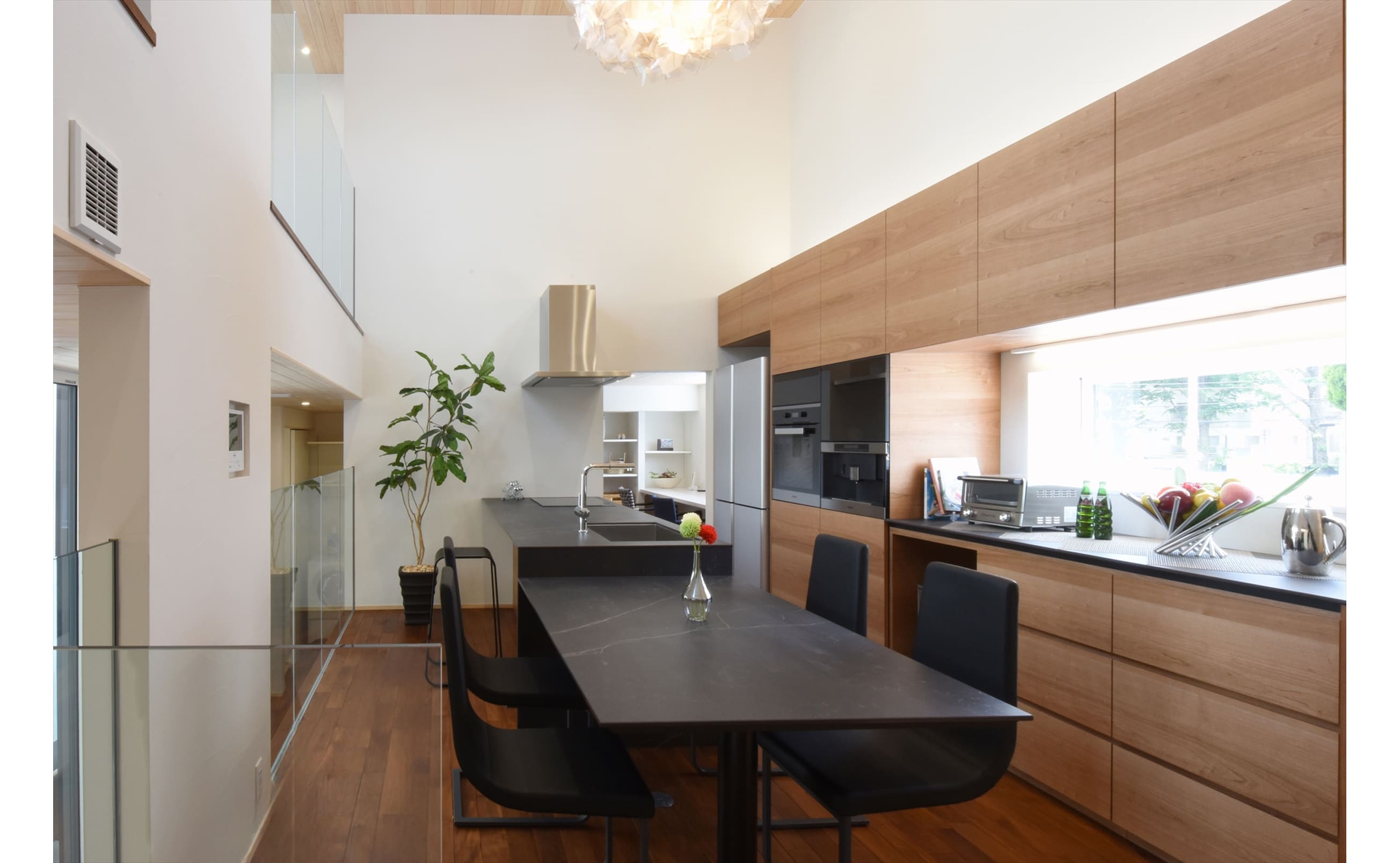 緩やかに家族間のコミュニケーションが取れるように空間の連続性を実現したLDK