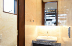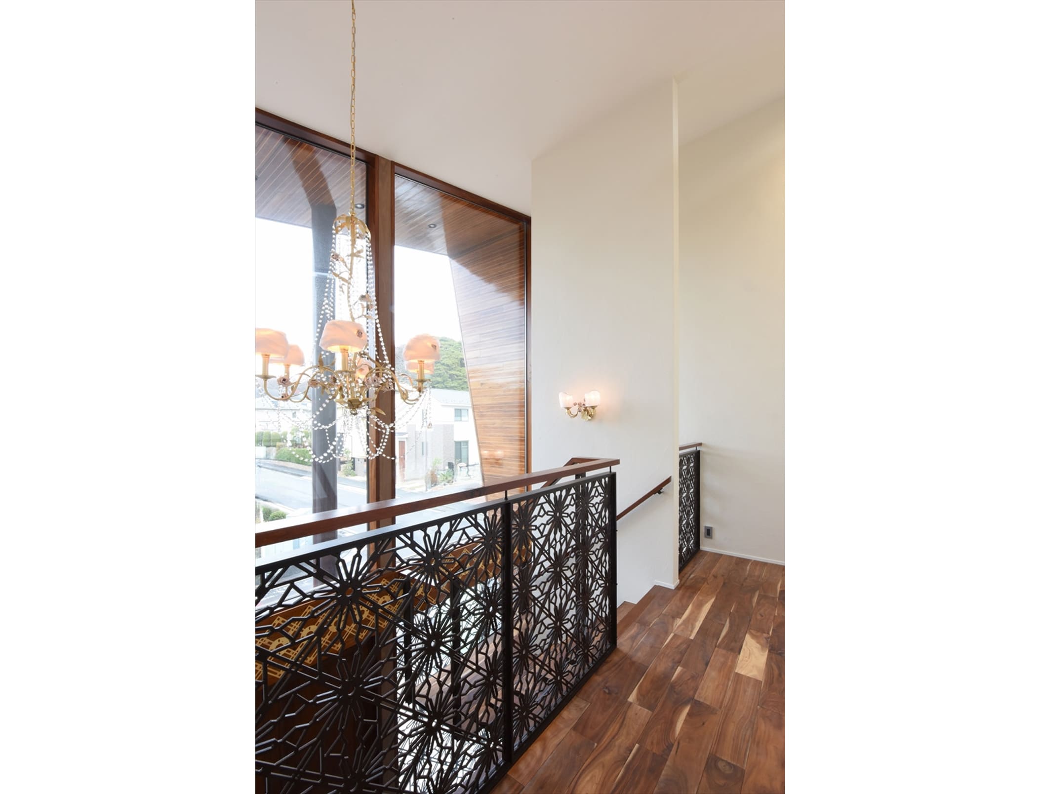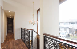 調理にスパイスをよく使用されるとの事なのでキッチンはダイニングと隔離していますが、視覚的な連続は持たせたかったのでガラスの欄間により天井は連続して見えるようにしてあります。