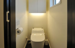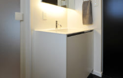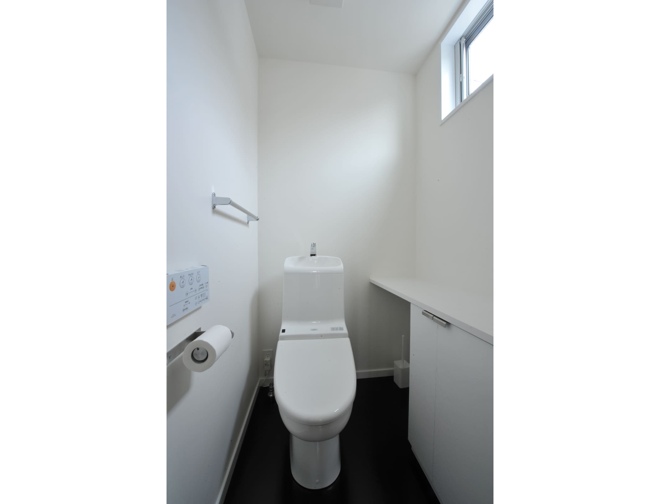 ゲストルームと2階トイレのレベル差や、スタジオとキッチン天井裏の隙間、外部にせり出した軒の上部に収納を設けたりして、隙間や壁の厚みの一見すると見落としがちな空間を積極的に収納として利用しています。