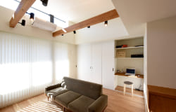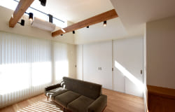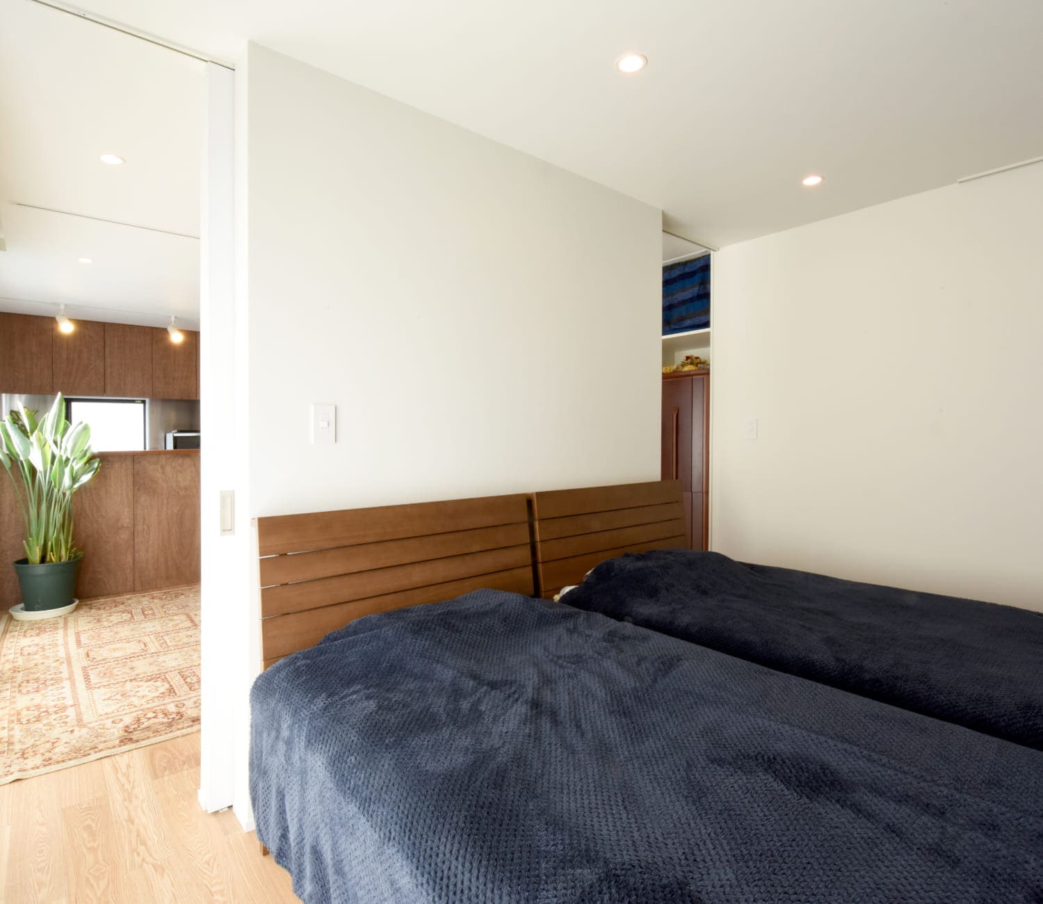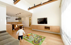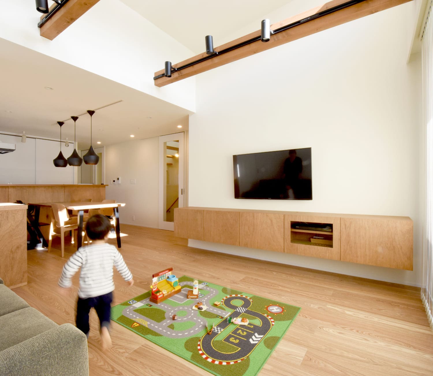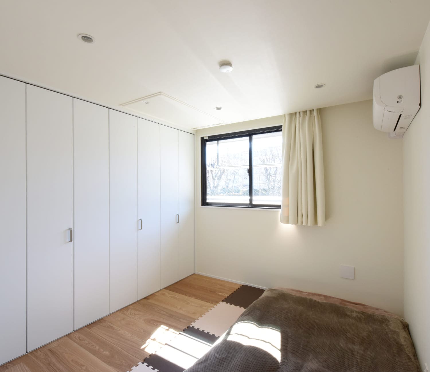 また、共用スペースであるLDKを挟んで子供部屋と寝室を配置したため、家族の動線は常にこのスペースを中心に発生し、家族のコミュニケーションが自然とこの場所で起きるよう計画しています。