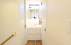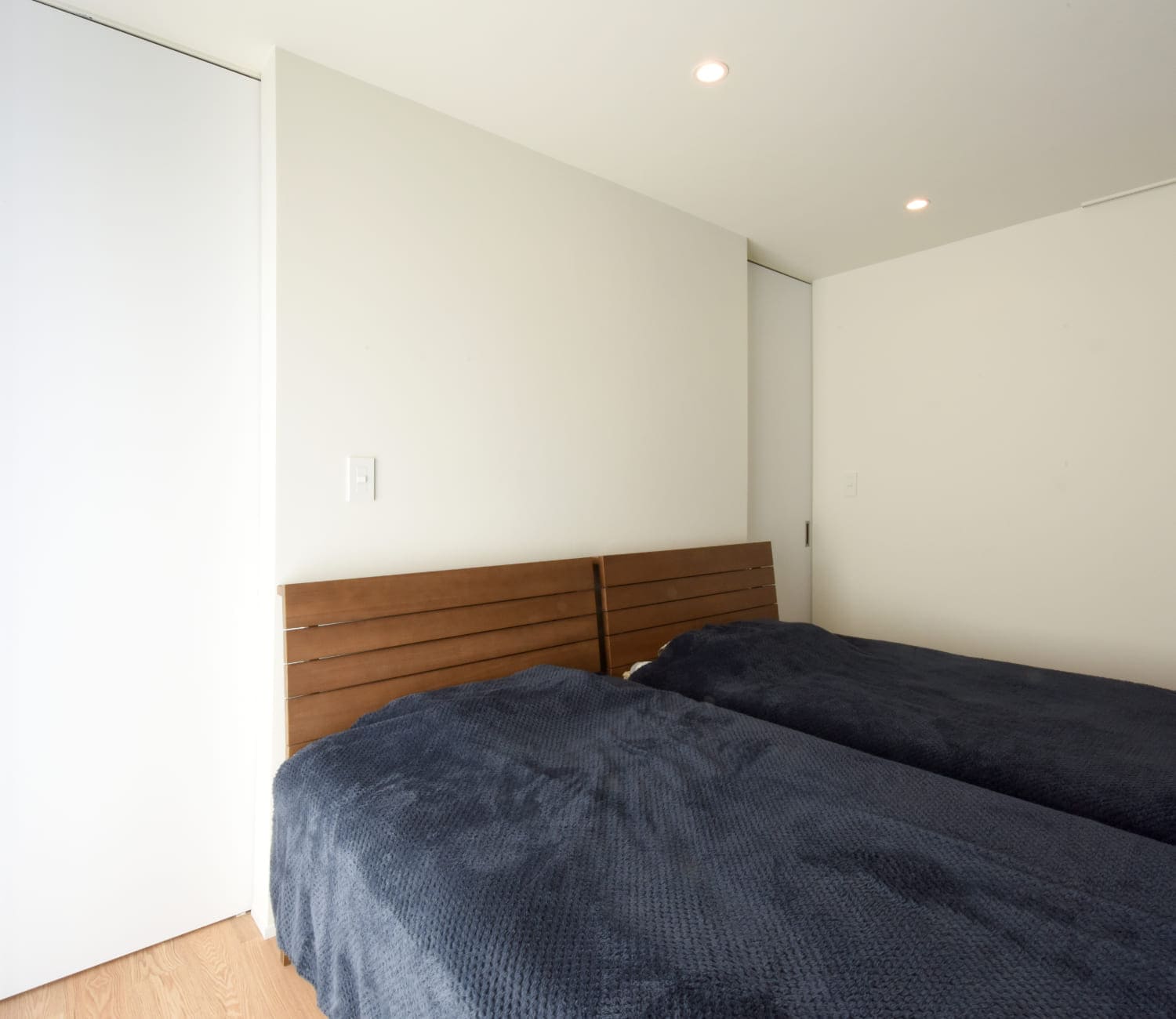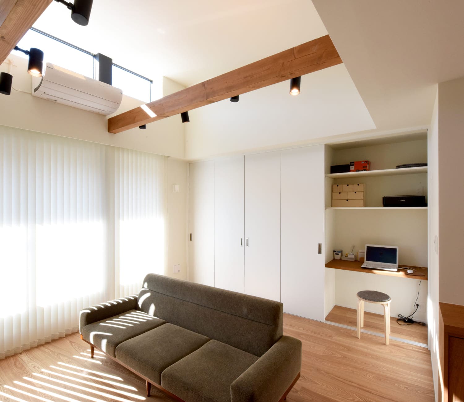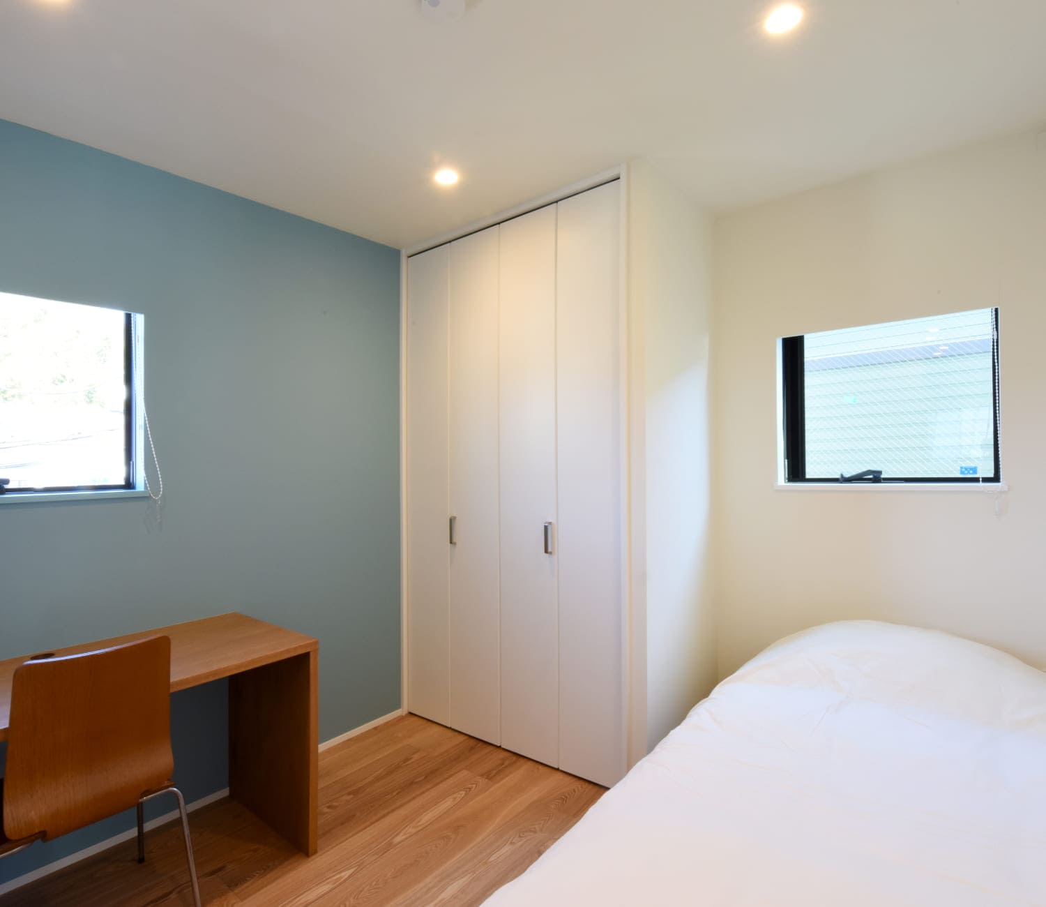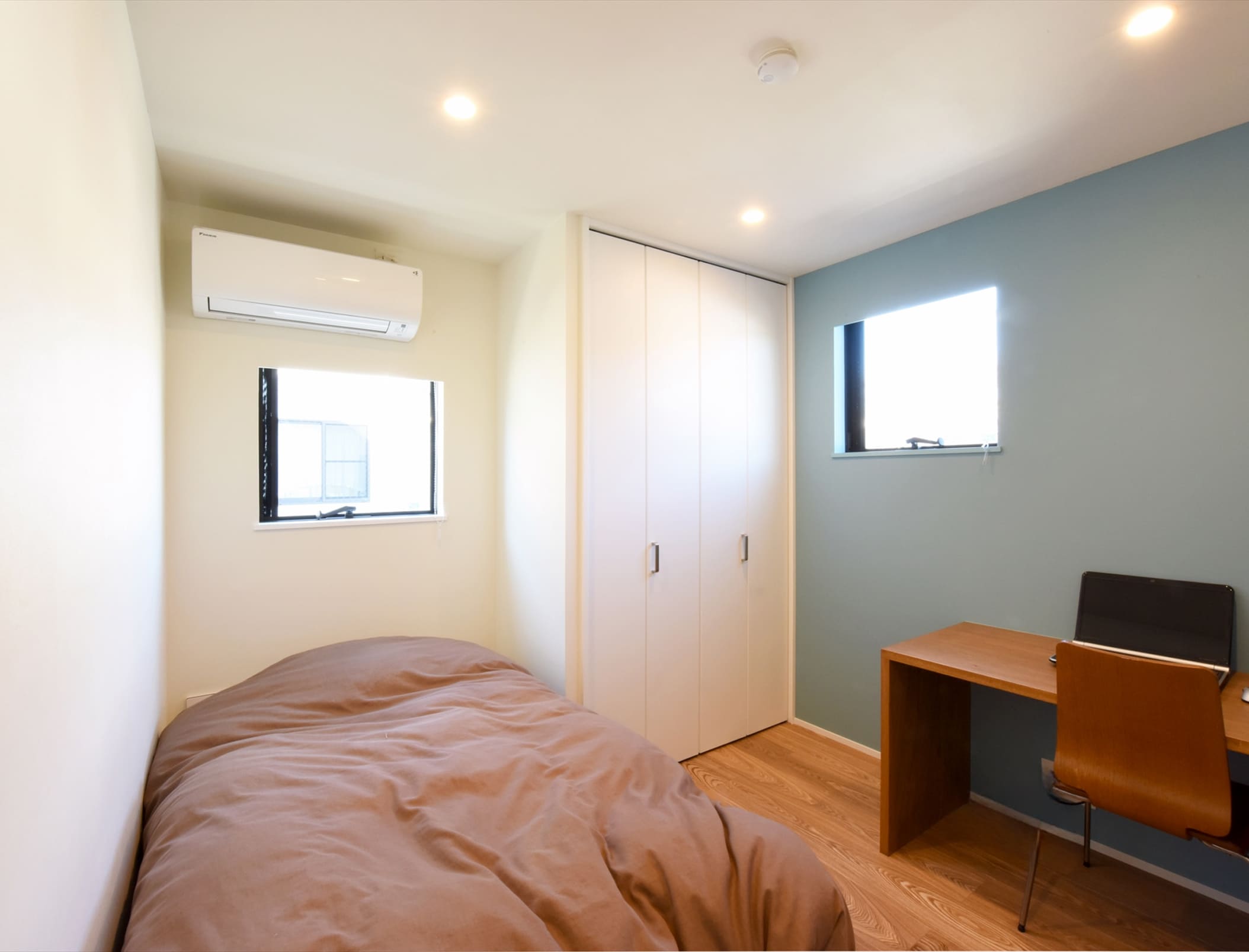また、共用スペースであるLDKを挟んで子供部屋と寝室を配置したため、家族の動線は常にこのスペースを中心に発生し、家族のコミュニケーションが自然とこの場所で起きるよう計画しています。