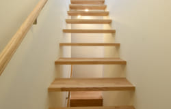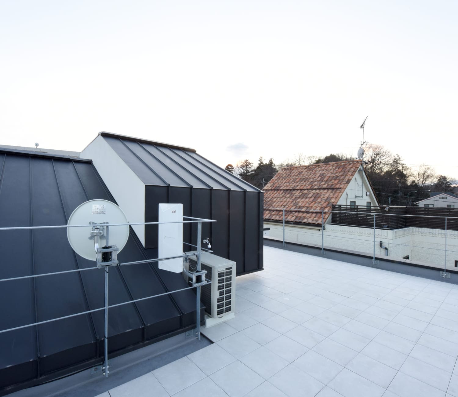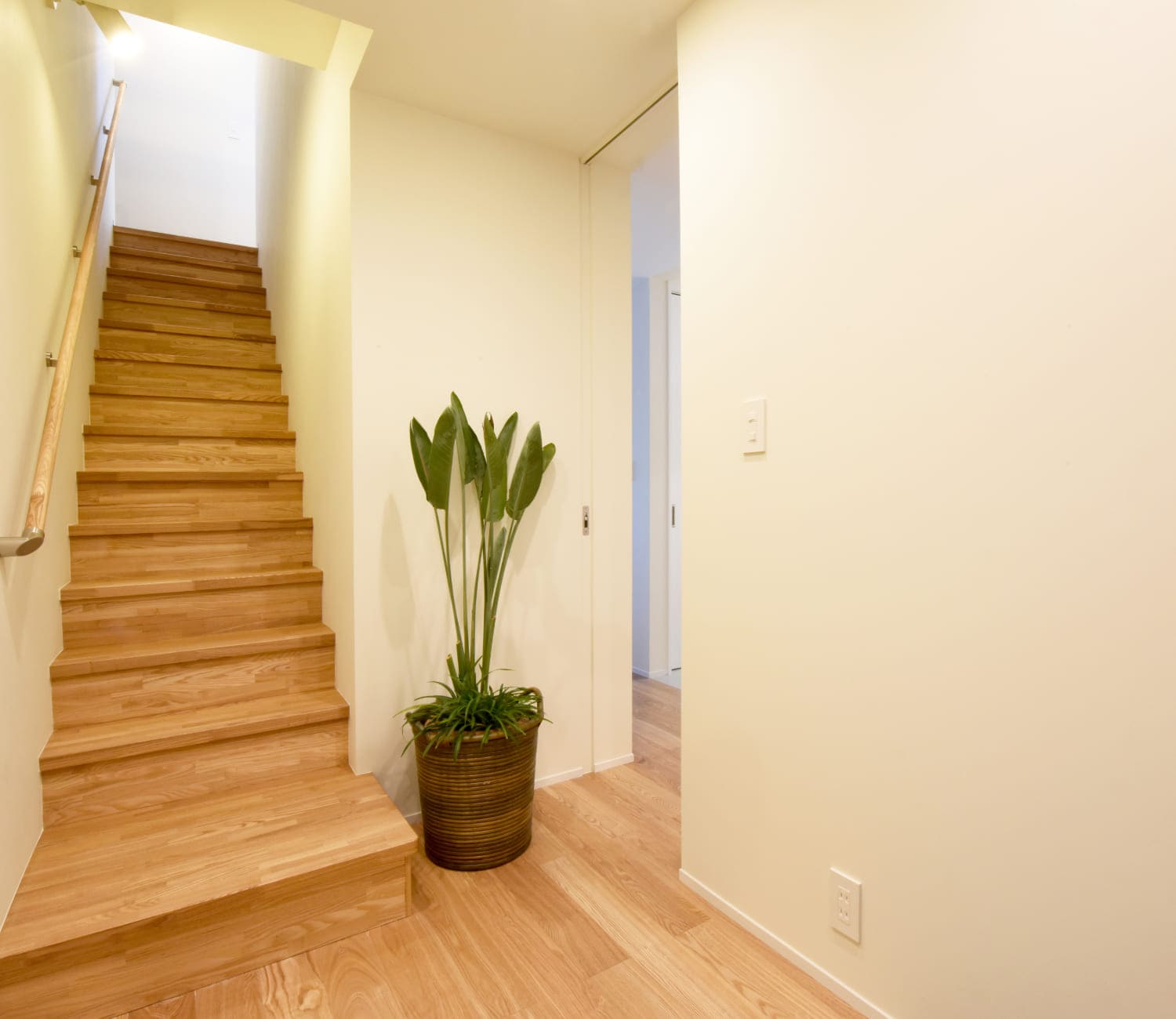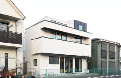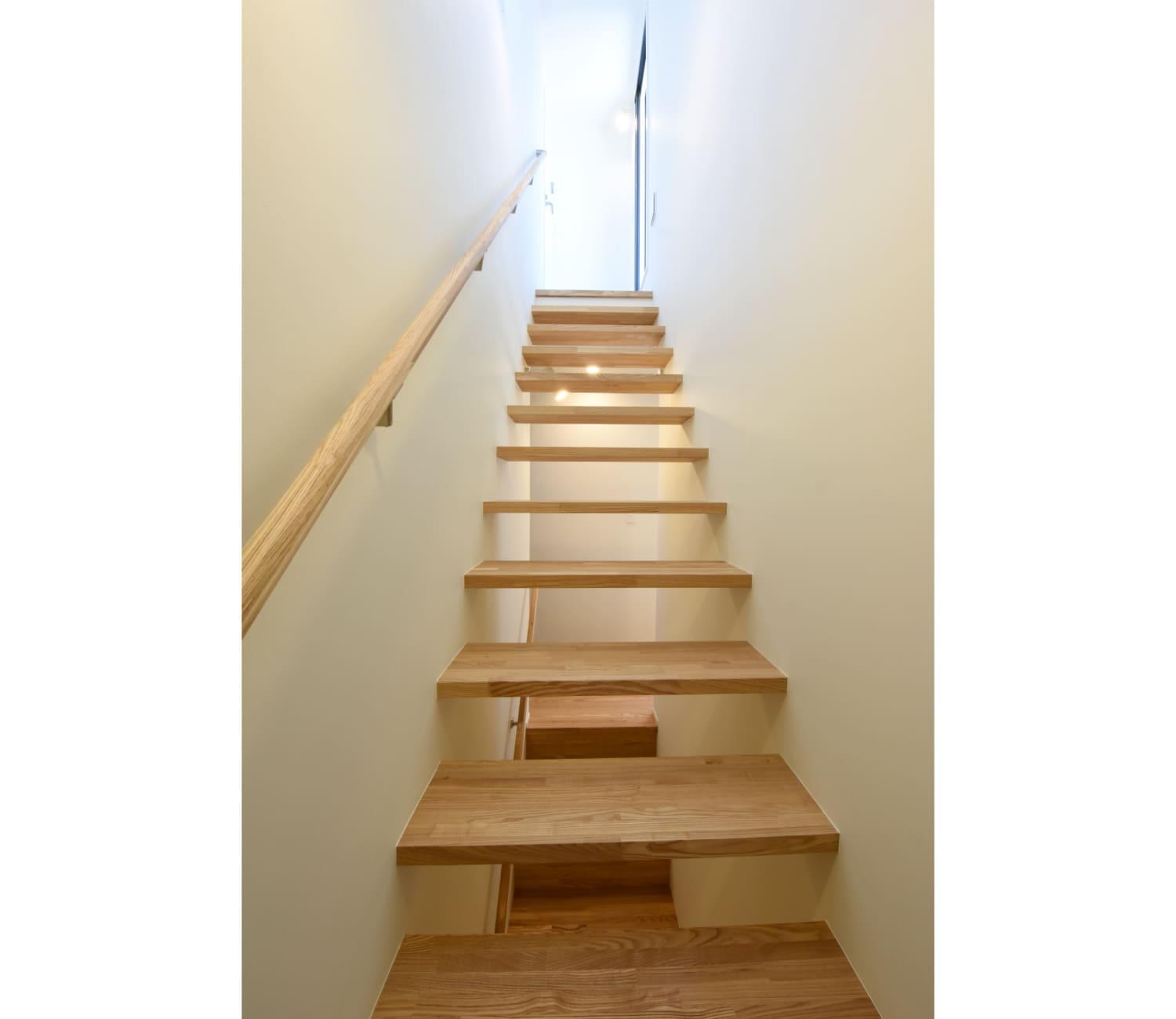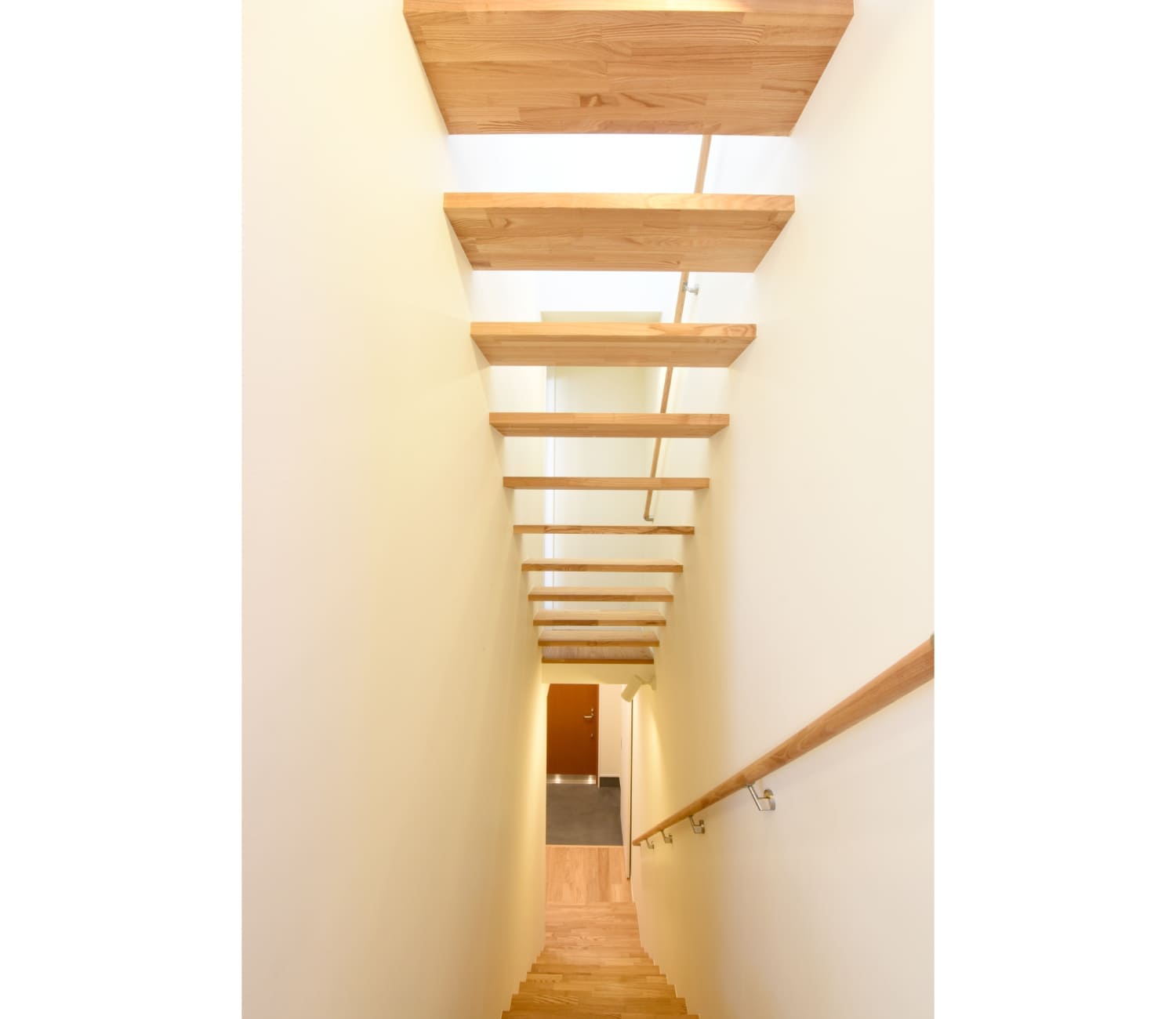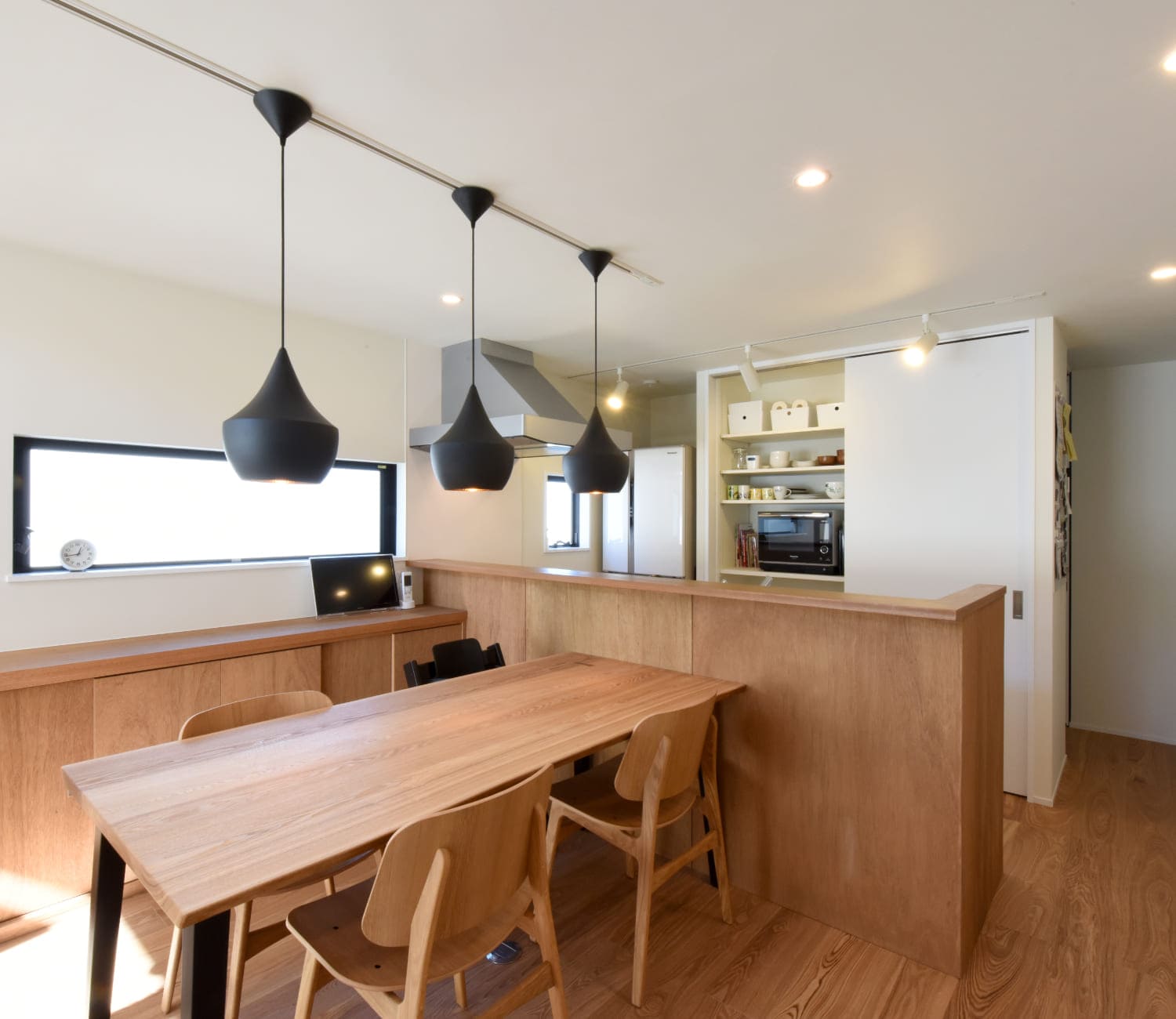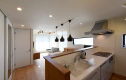 敷地が第一種低層住居専用地域にあり、建物の高さが制限されているため、全体の高さは抑えつつ、皆さんが集う2階のリビングは吹抜を設け天井の高さを出来るだけ高く取り開放感のあるスペースになるようにしています。