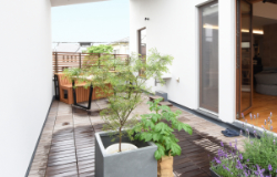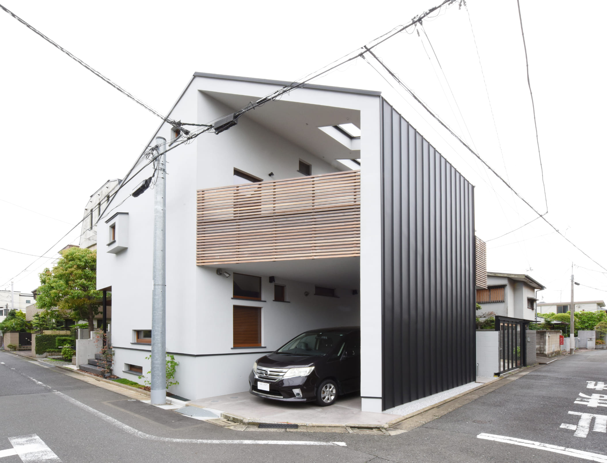 駐車スペースの上部をバルコニーとしてリビングと連続させていますが、そこがあたかもリビングの一部の半屋外的空間として機能するように計画されています。