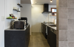 共用スペースである、リビングダイニングは実際の何倍にも広く感じられるようにバルコニーと連続させ、バルコニーに面した壁面には大開口のサッシを配置しています。