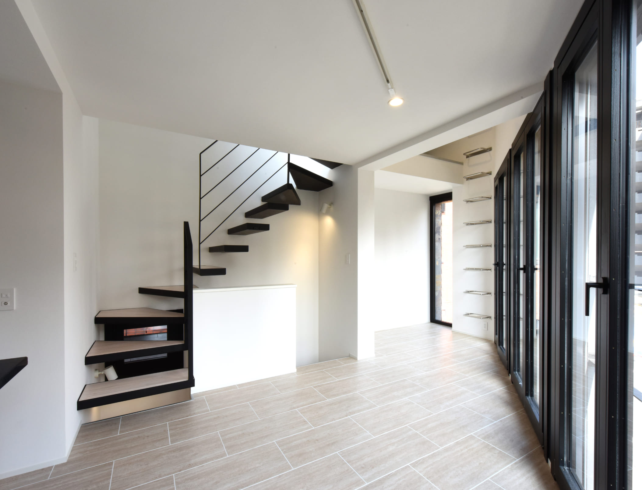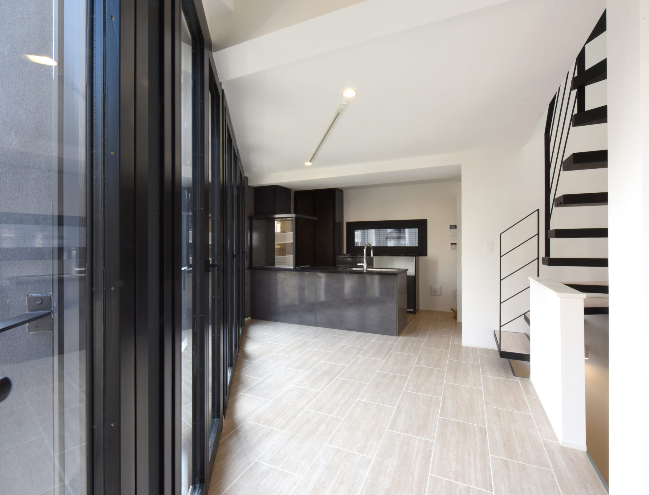 前面の幹線道路がとても広いので、3階には大きな開口部を設け、広さを感じさせる光溢れるリビングを計画しました。