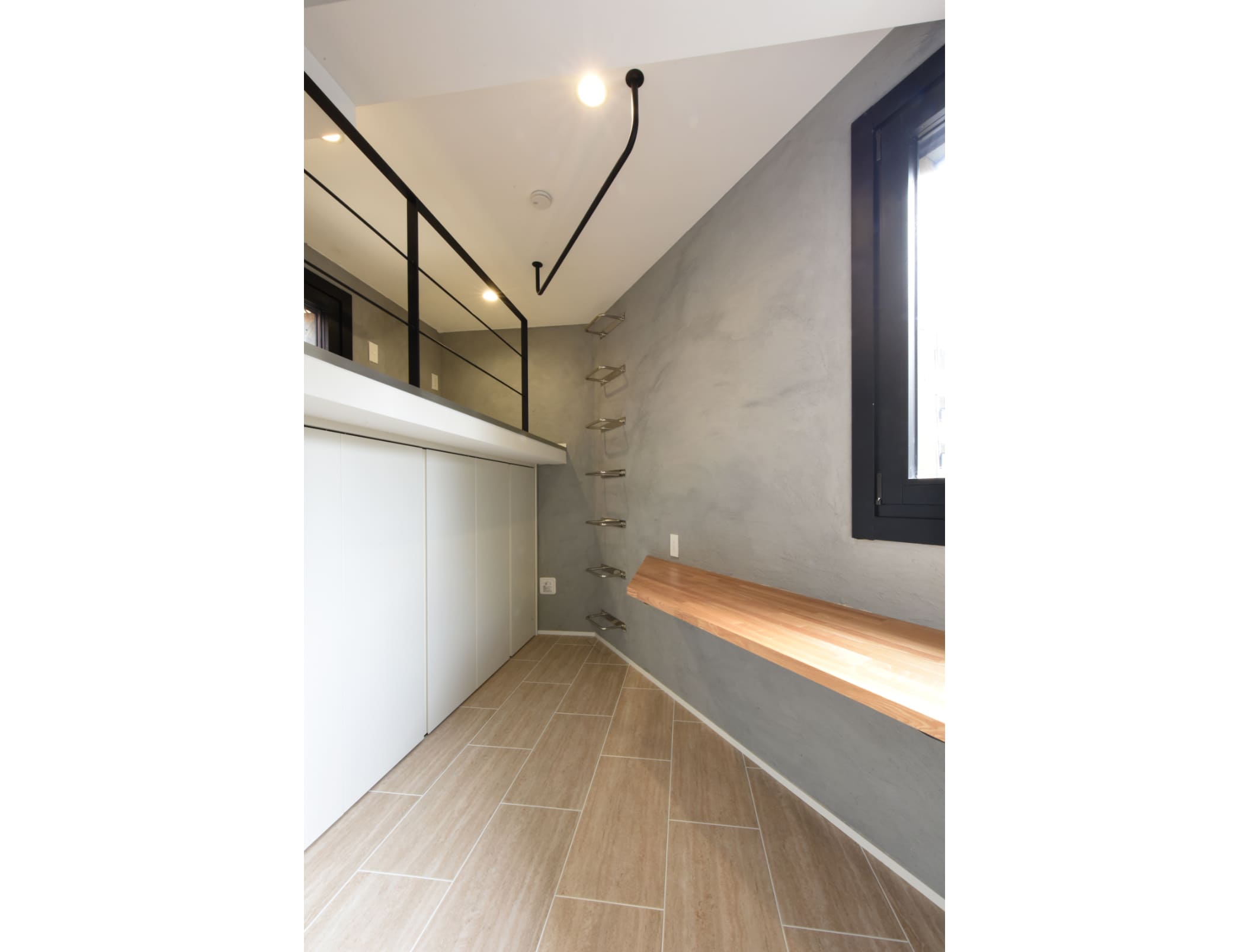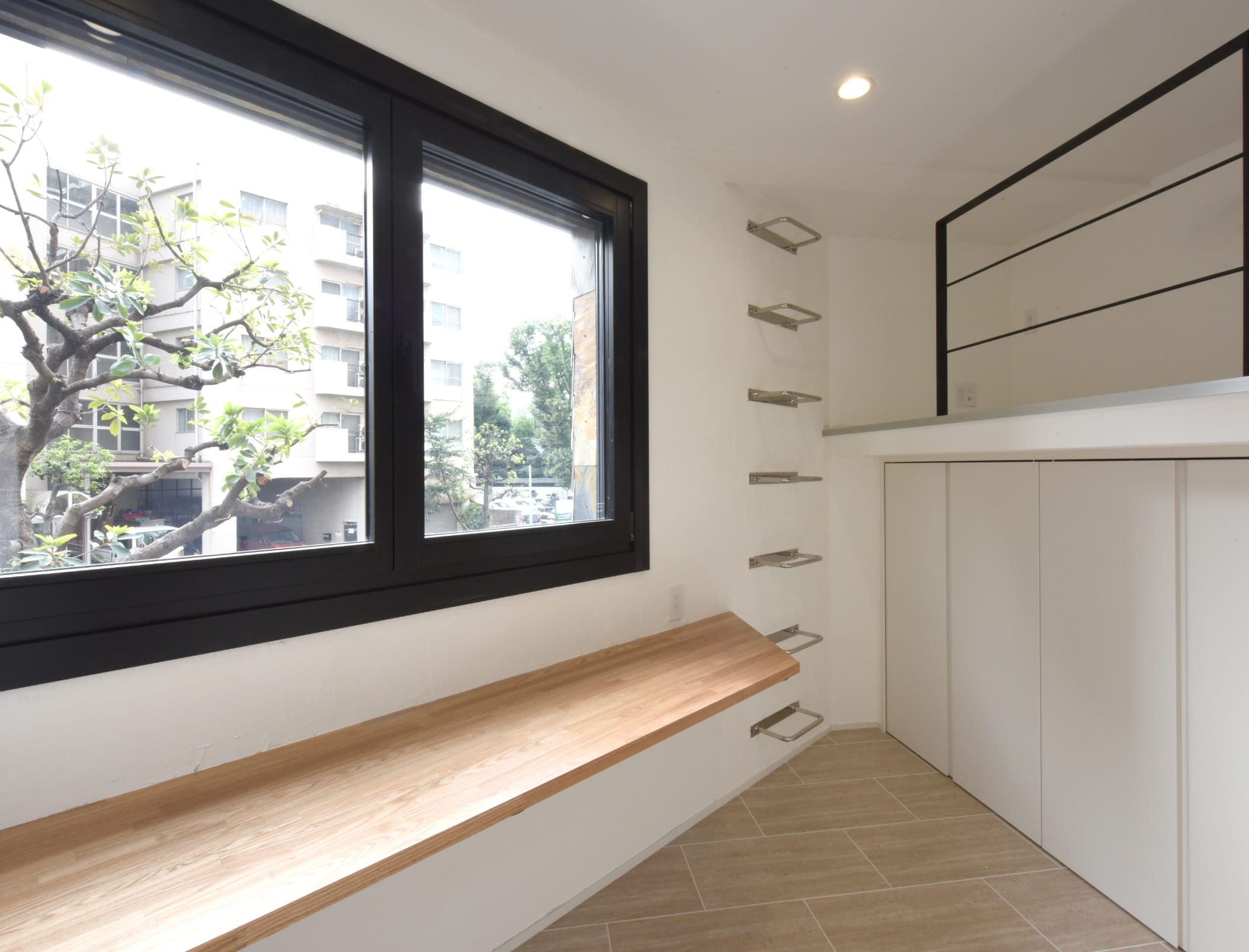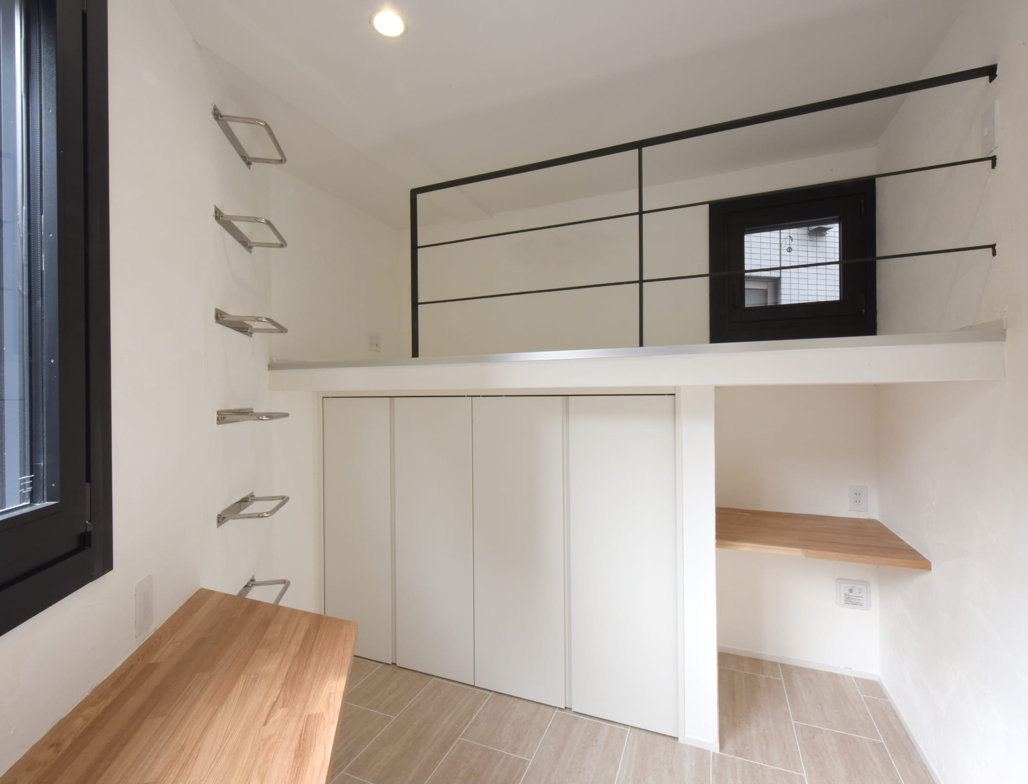 面積に平面的な制限があるため、垂直方向に空間を作り、各寝室はロフトベッドとして収納と寝るスペースを重ねることにしました。