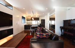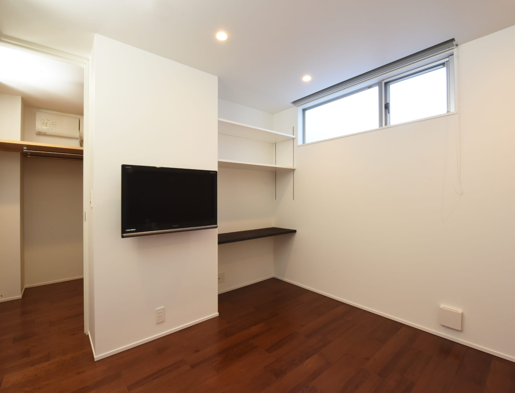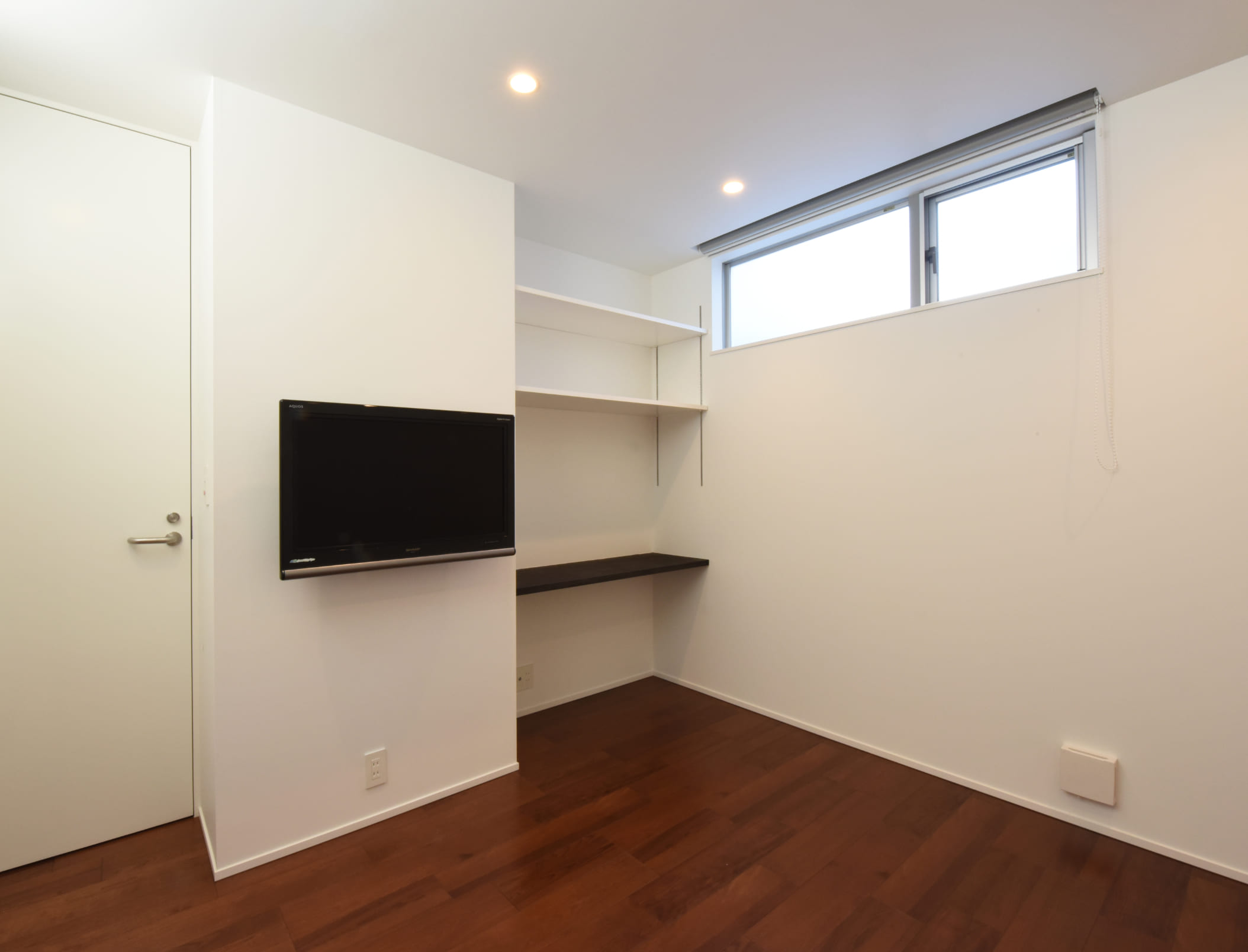 リビングから子供部屋へアクセスするようにしたいとのご希望だったので、隣接して配置し、プライバシーに配慮しつつ、光がリビング/子供部屋を透過するようにし、お互いの部屋が光を最大限採り入れられるように計画しました。