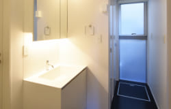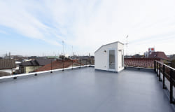 プライバシーの確保の観点からこのプロジェクトでは、1階に主寝室・洗面・浴室などの空間、2階にリビングを計画しています。屋上はルーフバルコニーとして利用します。