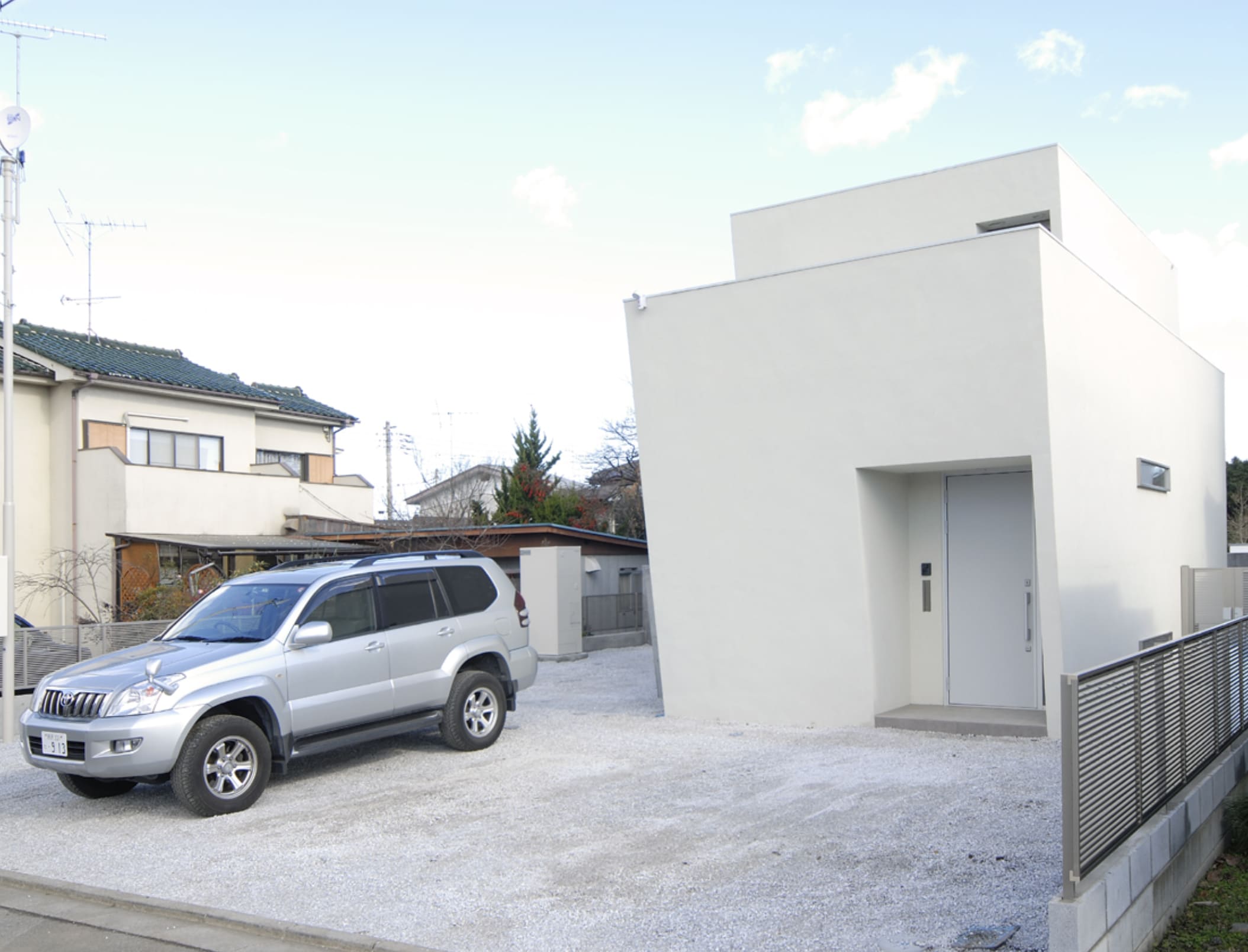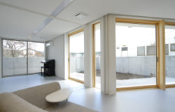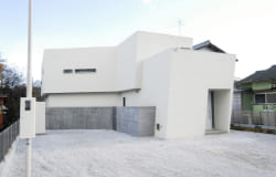 周囲が住宅と畑が混在する、のどかな環境に建つ、ご両親世帯+ご子息世帯の2世帯の家族が住むための住宅です。